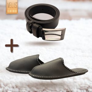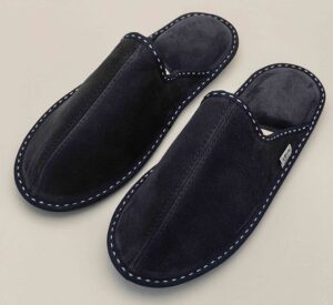 Мъжки домашни чехли от телешка кожа – черен шагрен