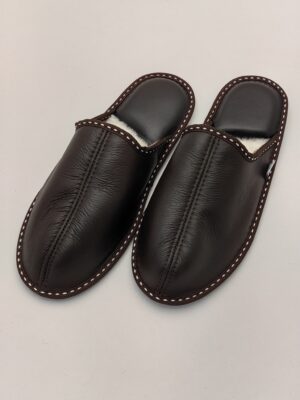 Мъжки домашни чехли от телешка кожа – кафяв шагрен