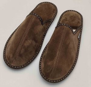 Мъжки домашни чехли от телешка кожа – кафяв велур