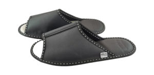 Мъжки домашни чехли от телешка кожа – черен шагрен